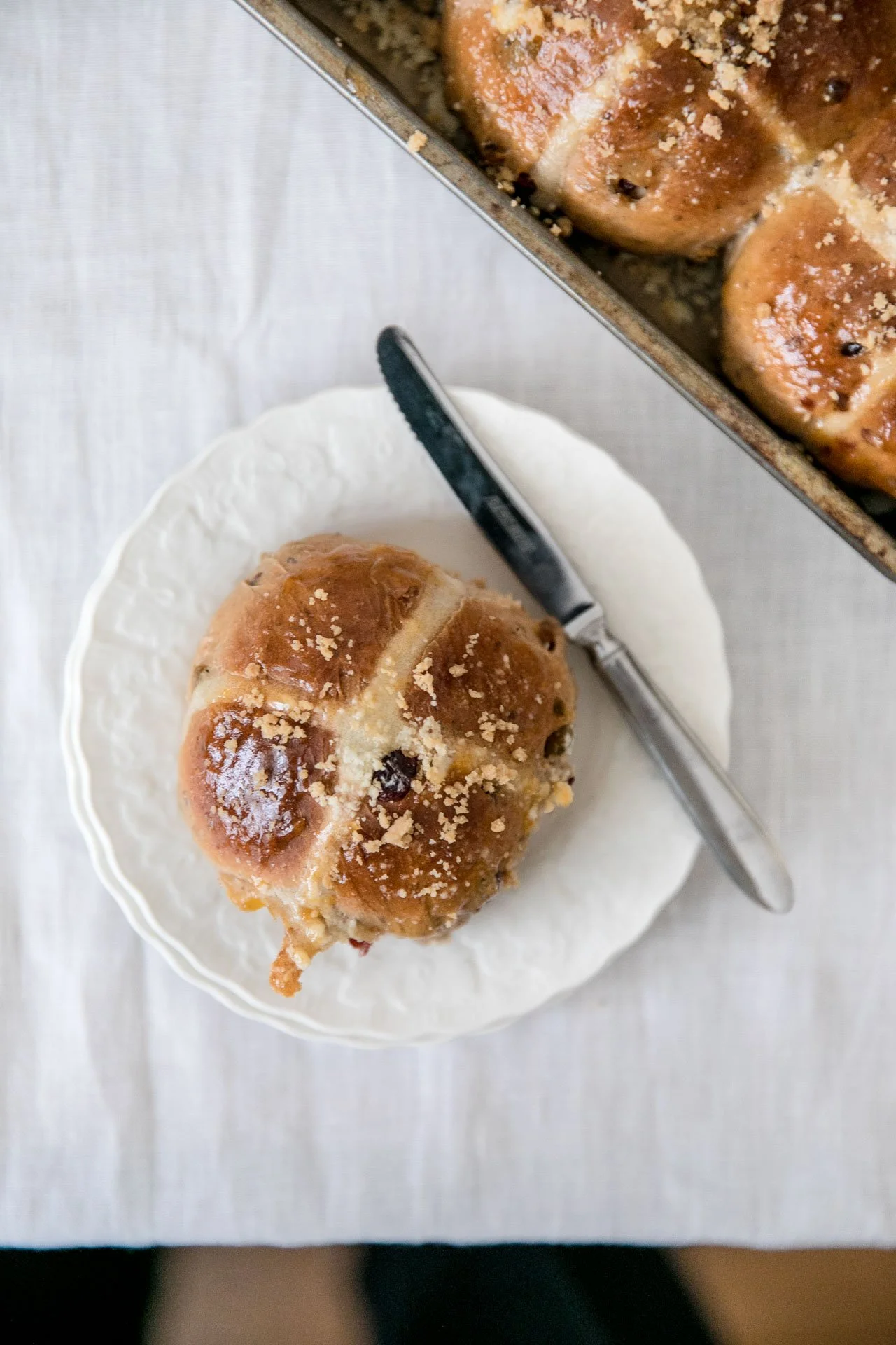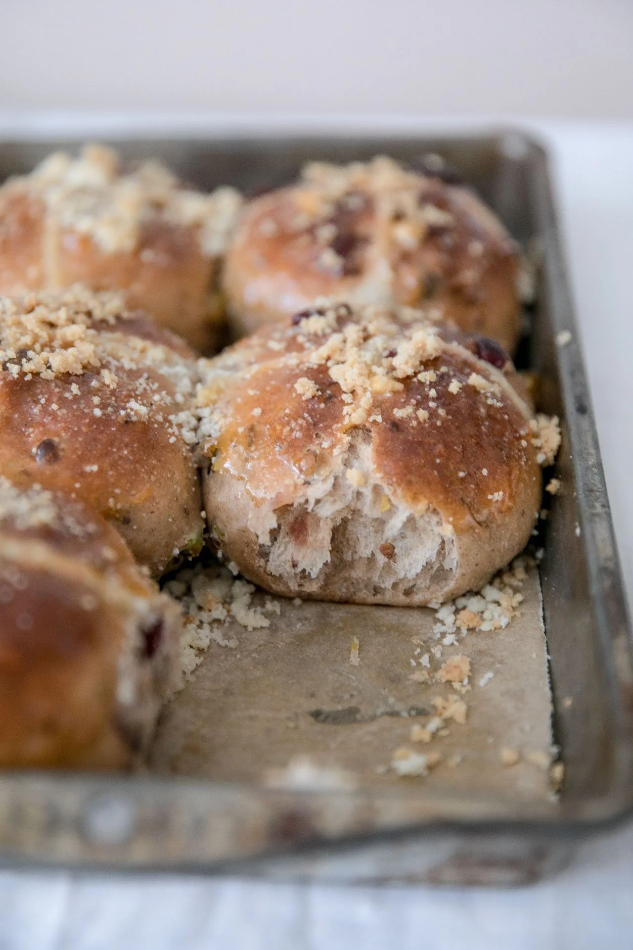 CRANBERRY & PISTACHIO HOT CROSS BUNS